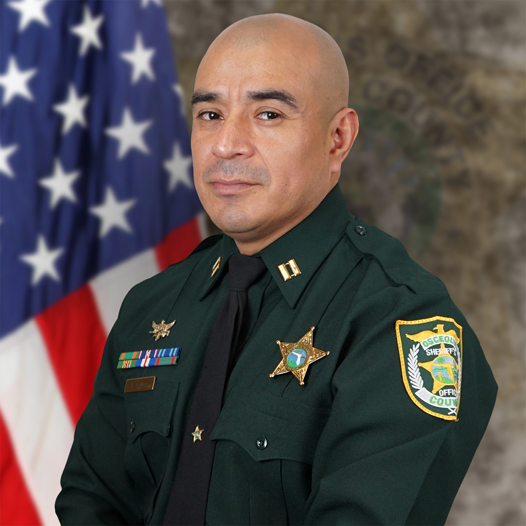 Captain Calvas began his law enforcement career shortly after being honorably discharged from the United States Navy in 2005. He has been with the Osceola County Sheriff’s Office since 2007, starting as a patrol deputy for three years. During his time with the agency, he gained experience in various areas, including narcotics and criminal investigations. He was a member of the SWAT team for approximately nine years.