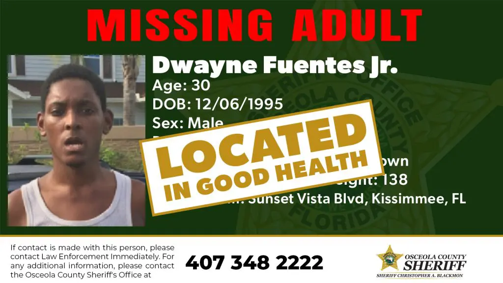 We are pleased to report that Dwayne Fuentes Jr. has been located and is in good health.