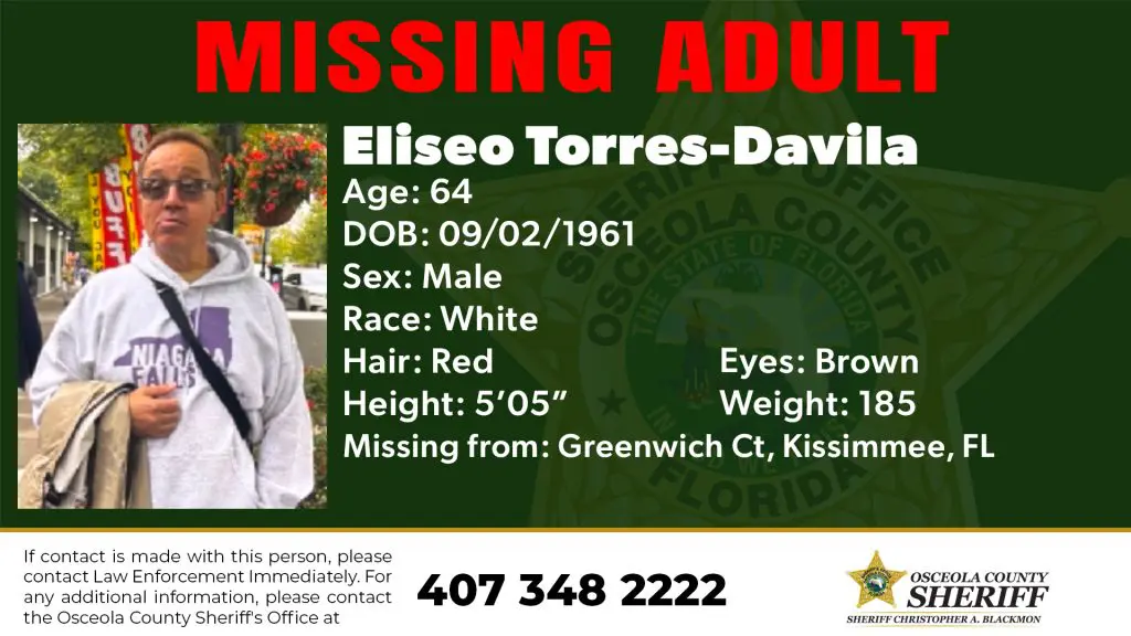 The Osceola County Sheriff’s Office asks for the community’s help locating a missing person.
