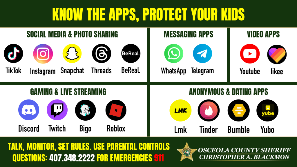 If you have any questions about how to keep your child safe online, please contact our office at 407-348-2222.