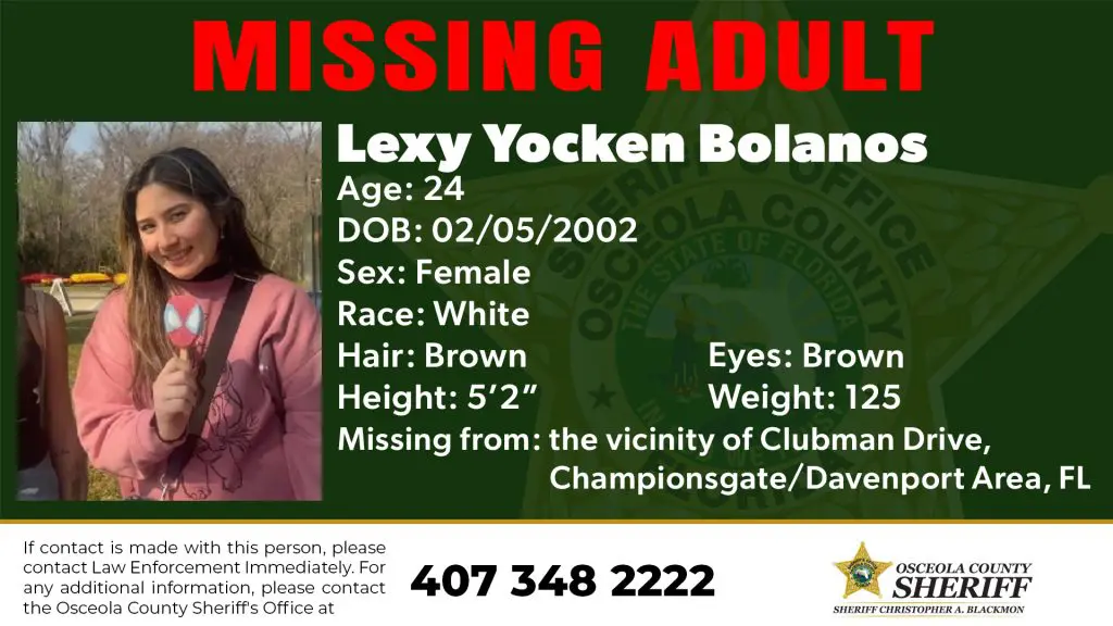 If you have any information on this person’s whereabouts, don’t hesitate to contact the Osceola County Sheriff’s Office at 407-348-2222 or dial 911 immediately.
