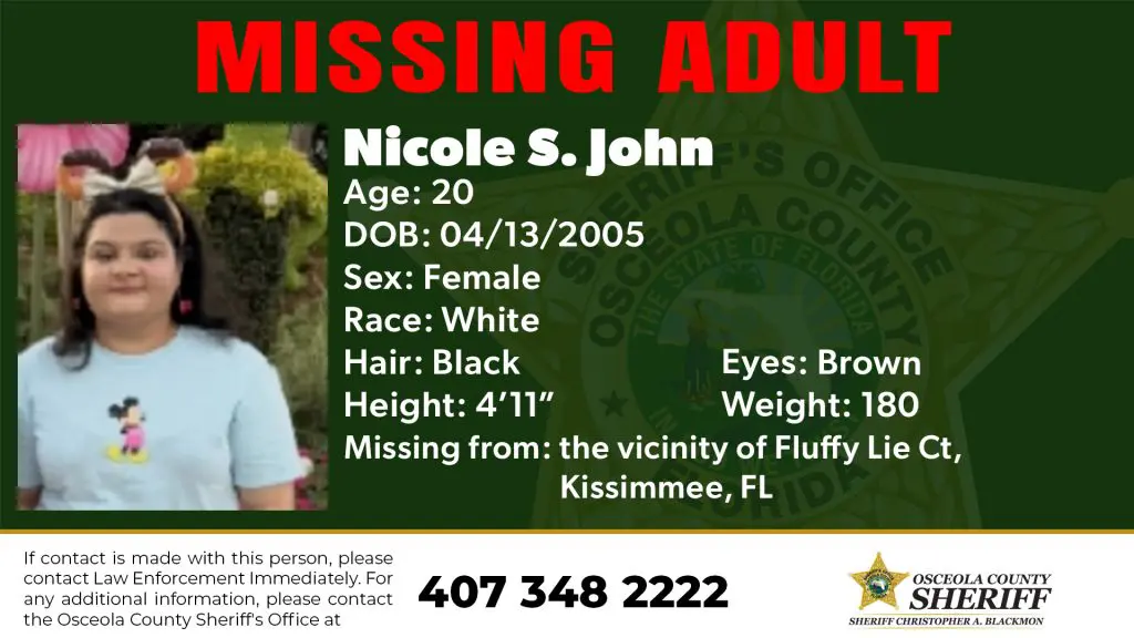 The Osceola County Sheriff’s Office asks for the community’s help locating a missing person.