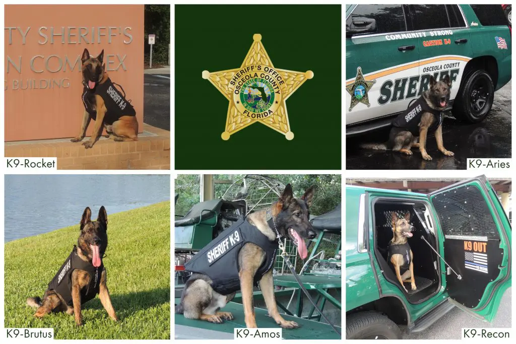 Osceola County Sheriff’s Office K9s Rocket, Aries, Brutus, Recon, and Amos have received a bullet and stab protective vests thanks to a charitable donation from non-profit organization Vested Interest in K9s, Inc. The vests were sponsored by NaturVet and embroidered with the sentiment “This gift of protection provided by NaturVet”.